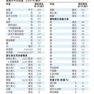 - 微量營養素組合能迎合腎病病人的需求:磷、鈉和鉀含量低,維他命B雜含量高